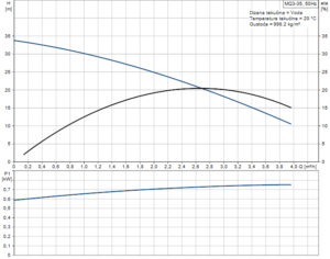 Radna karakteristika: Q = 0 – 3,95 m3/h,  H = 35 – 11 m.